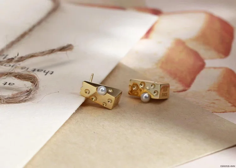 Sterling Silver Unique Cheese Design Freshwater Pearl Earrings