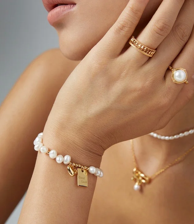 This pearl bracelet features a golden good luck tag crafted from high-quality sterling silver, adding a touch of sophistication to your ensemble. Elevate your wardrobe with our Good Luck Tag Sterling Silver Pearl Bracelet and make a fashion statement that is both classy and refined.